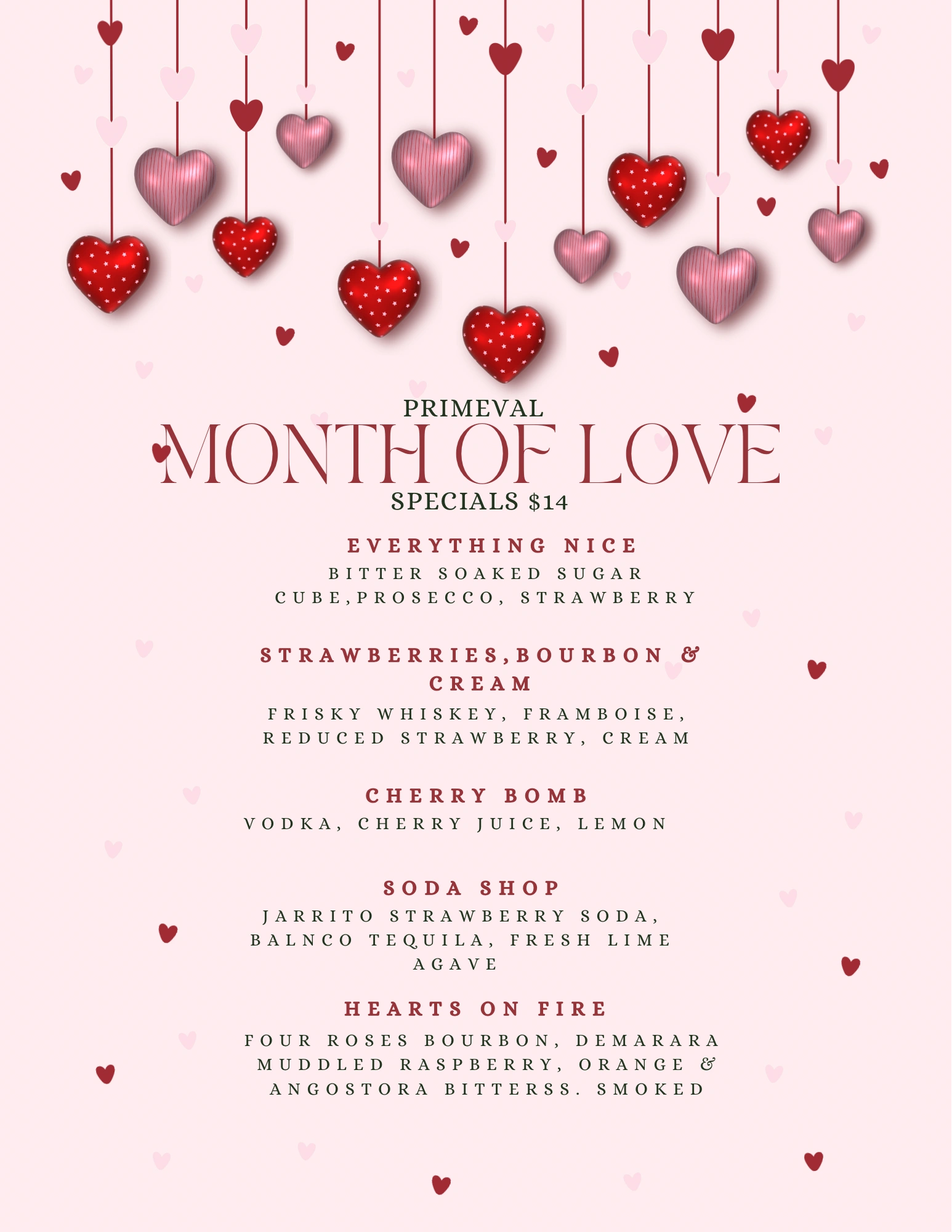 Join us all month long for our Valentine Cocktail Menu and this week only for our Valentine Food Specials!